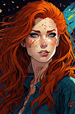 Peu coquette, ses vêtements sont toujours fonctionnels, solides, et discrets. Elle porte peu de bijoux et aucun n’ayant de valeur. Ses cheveux flamboyants et naturellement bouclés sont généralement attachés par une simple pince en bois, ou un crayon.