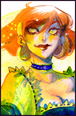 Parcours : Mystérieusement -ça vous intrigue hein ? -débarquée à Hurlevent autours de ses vingt ans. Après un petit séjour au Sanatorium, elle a été ramassée par les fidèles de l’Agneau Assassiné et s’est attachée à parfaire sa connaissance des sortilèges de démoniste.
