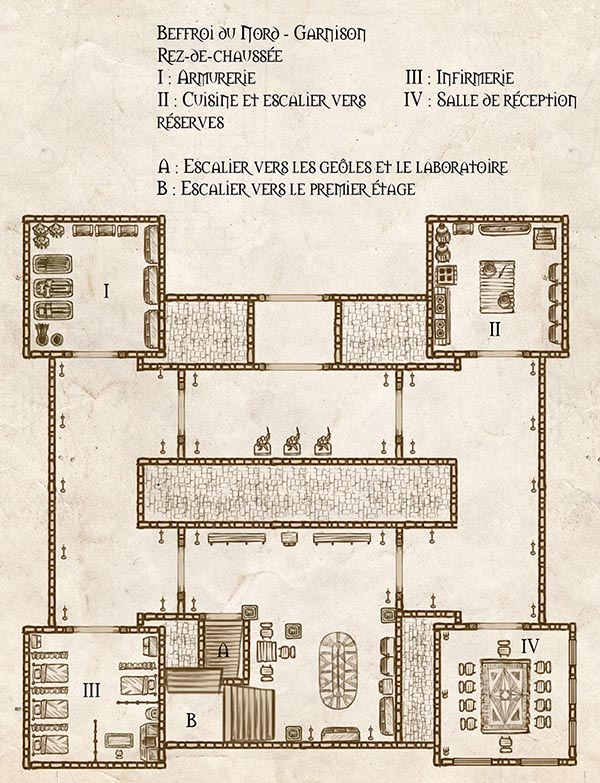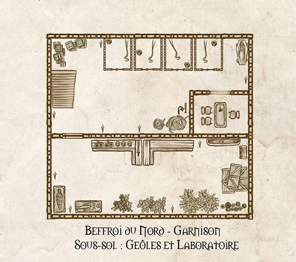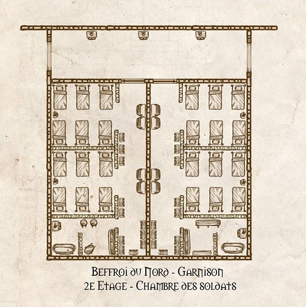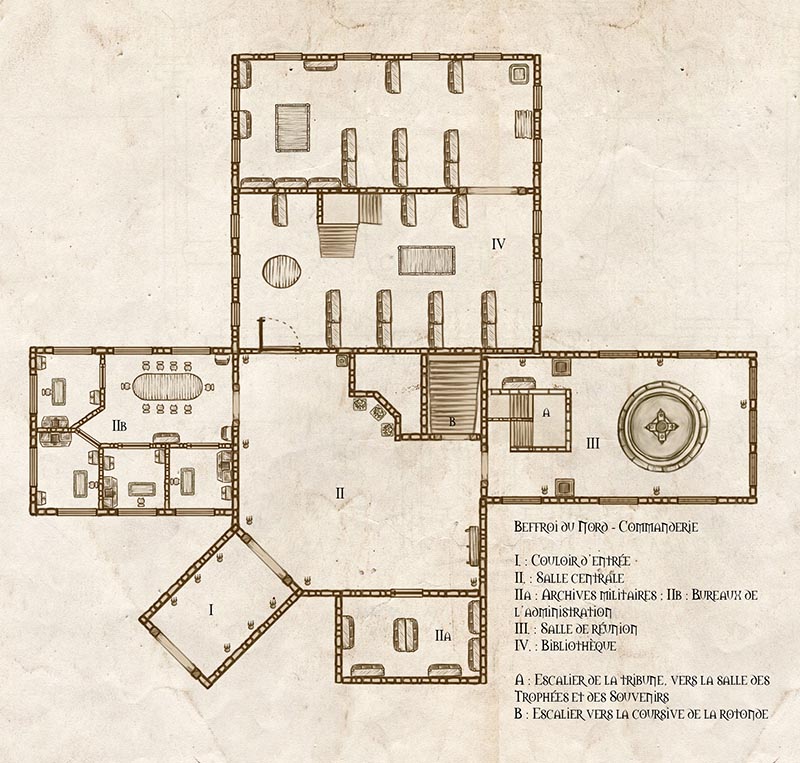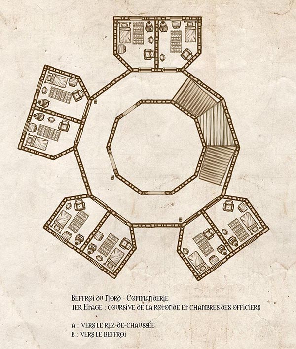 Le Beffroi du Nord est plus qu’un bâtiment militaire : c’est un véritable petit territoire, une enclave humaine au coeur de la pourriture des Maleterres. Comme tout territoire, il se doit d’être administré avec précision et rigueur. Et qui dit rigueur dit plans.